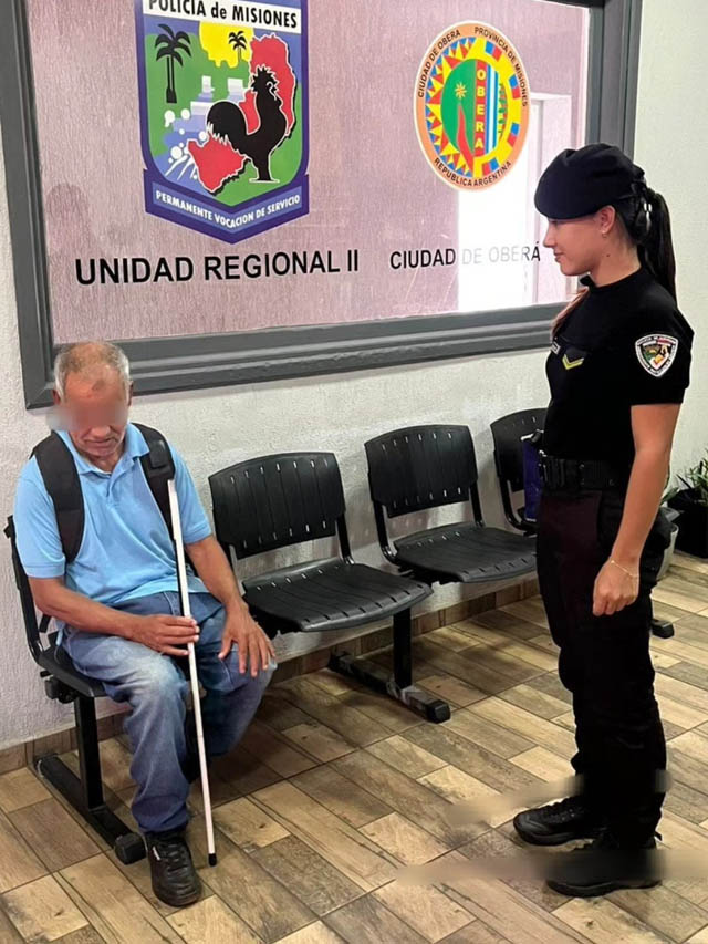 AGENCIA MISIONES.UNO | Efectivos de la Policía de Misiones asistieron a un hombre de 59 años con discapacidad visual que se encontraba desorientado en la vía pública y lo trasladaron hasta su domicilio en la localidad de Campo Ramón.
