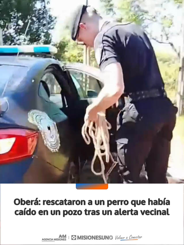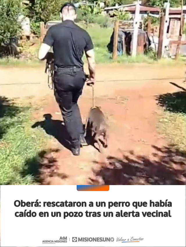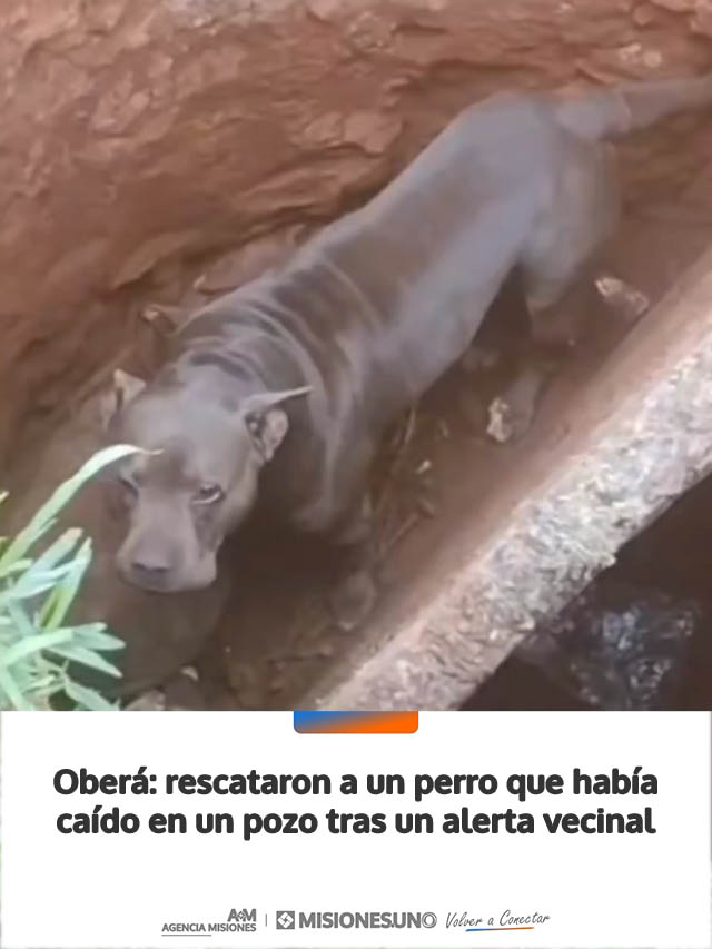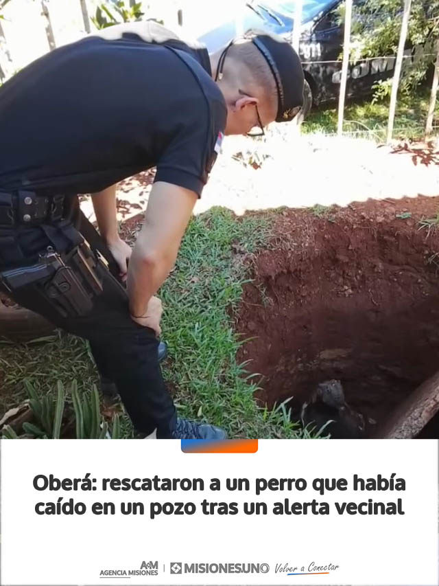 AGENCIA MISIONES.UNO | Un operativo policial permitió salvar a un perro que había quedado atrapado en una excavación en la zona de Picada Argentina, luego de que vecinos dieran aviso al 911.